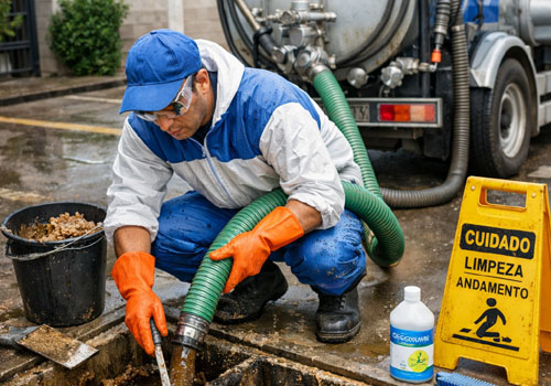 Limpeza de caixa de gordura eficiente, removendo resíduos e prevenindo entupimentos e mau cheiro.